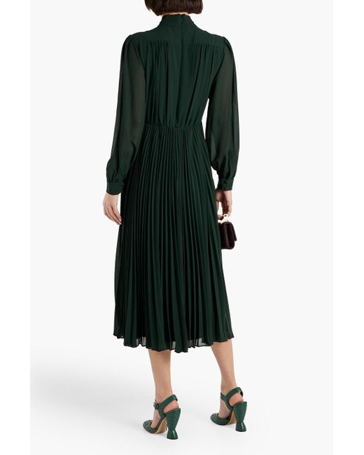 Tag : Mikael Aghal Pussy Bow Pleated Crepe Midi Dress In Green Lyst