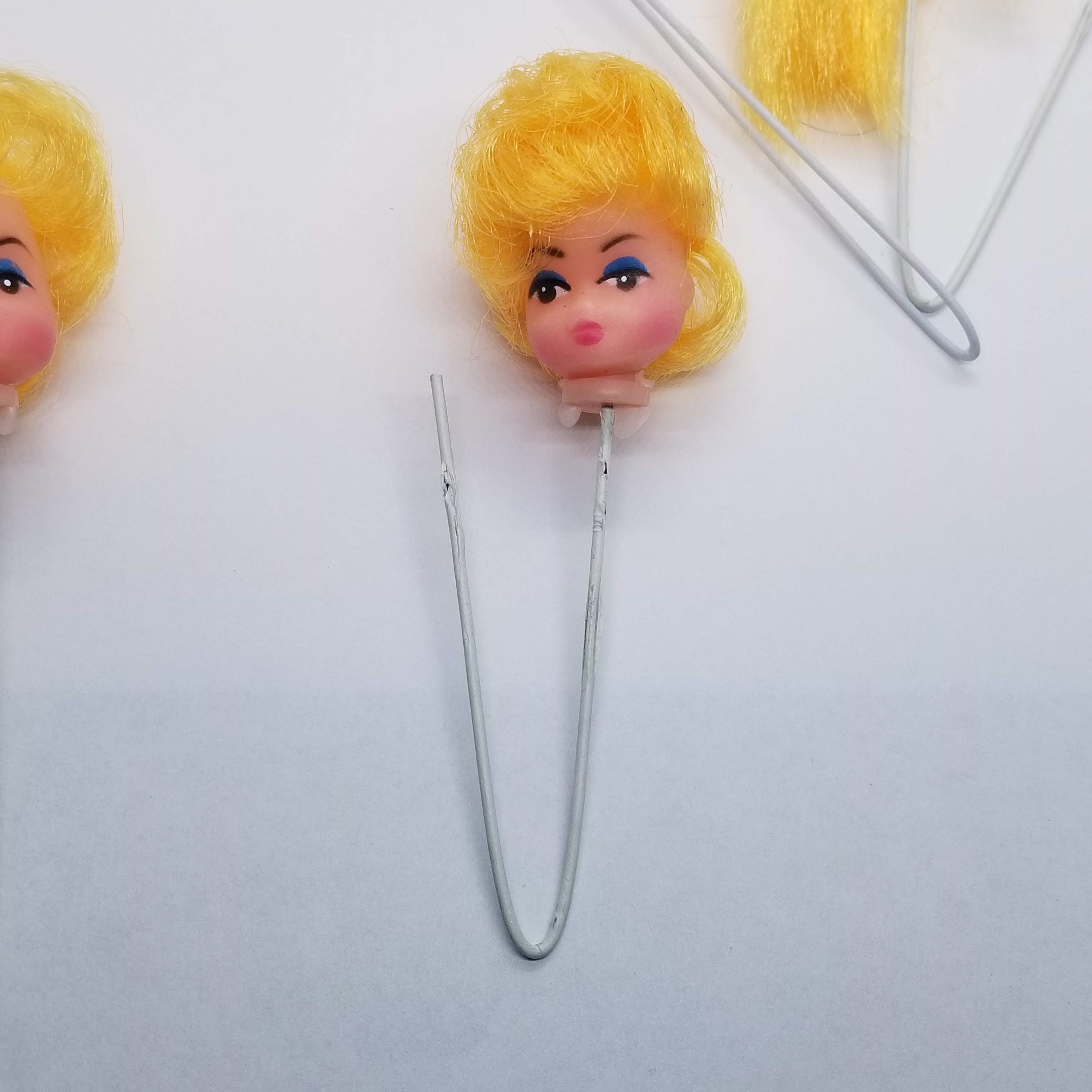 Miniature Blonde Doll Heads On A Wire Set Of Blondes Short Long Hair Cake Decorating