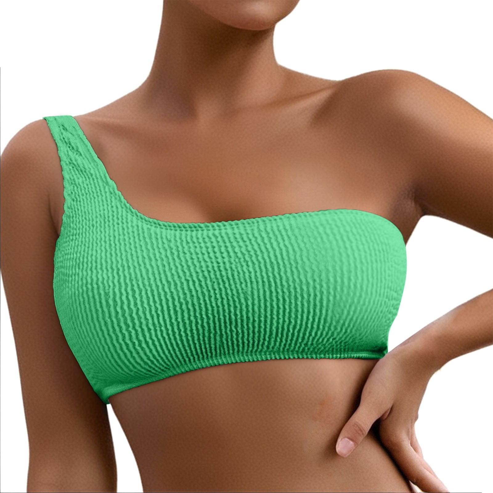 Mixue Swim Suits For Women Solid Color One Shoulder Bikini Sets For Women Top Ribbed Padded is a popular picture for sexy and hot.