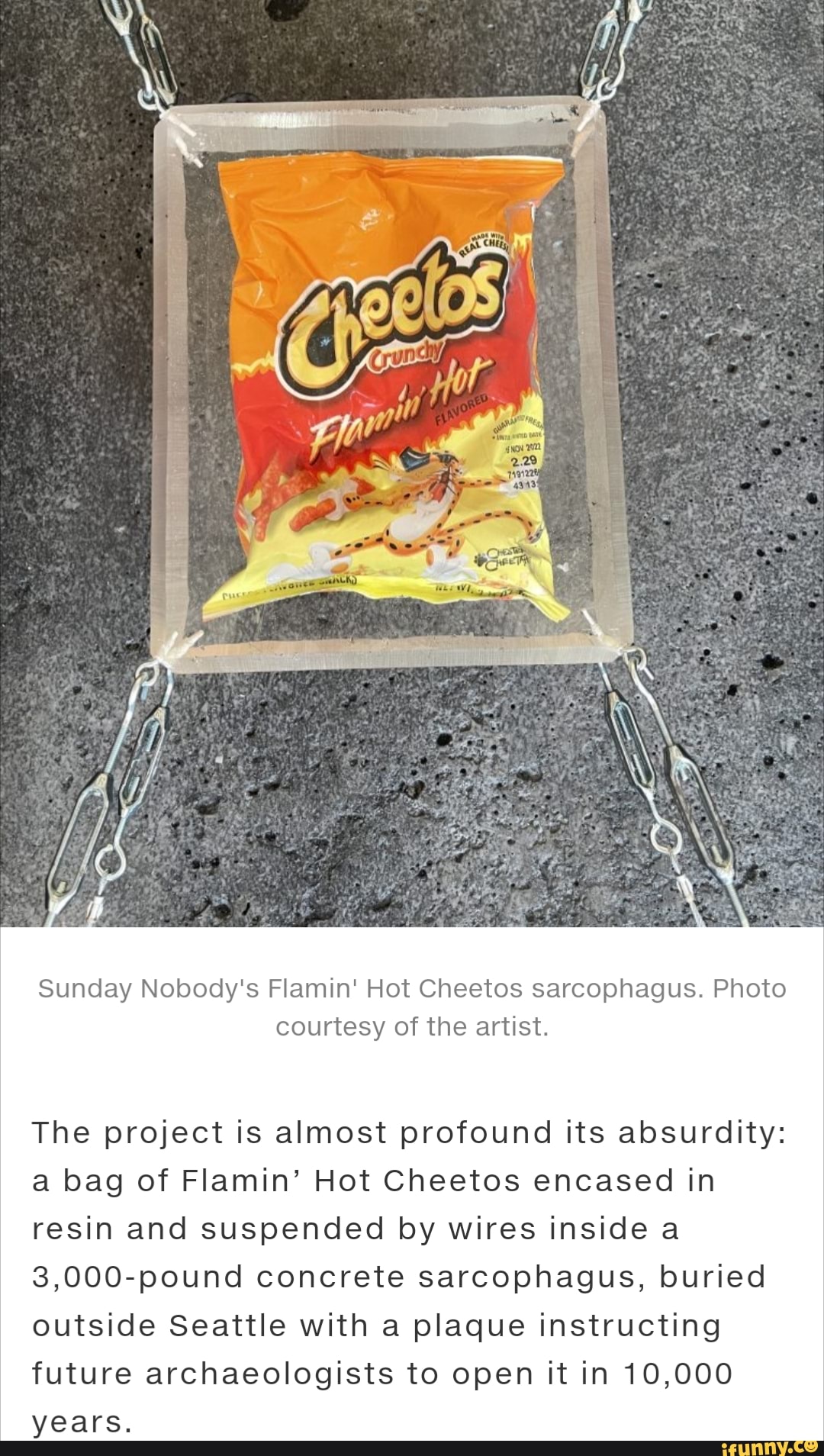 Mm Sunday Nobody S Flamin Hot Cheetos Sarcophagus Photo Courtesy Of The Artist The Project Is pictures has 500 x 400 · 50 kB · jpeg.