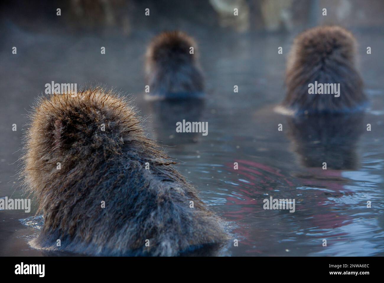 Monkeys In A Natural Onsen Hot Spring Located In Jigokudani Monkey Park Nagono Prefecture
