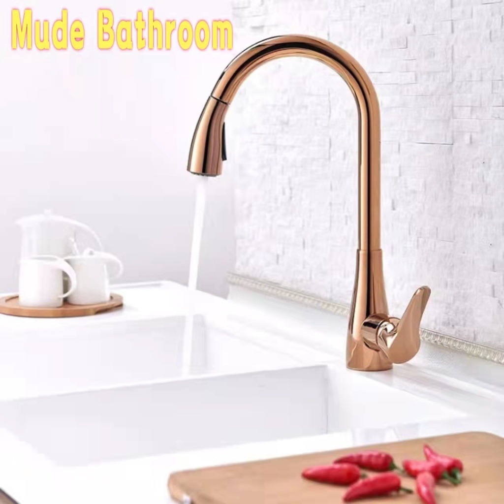 Tag : Mude High Quality Kitchen Faucet All Copper Black Pull Out Dual Outlet Hot And Cold
