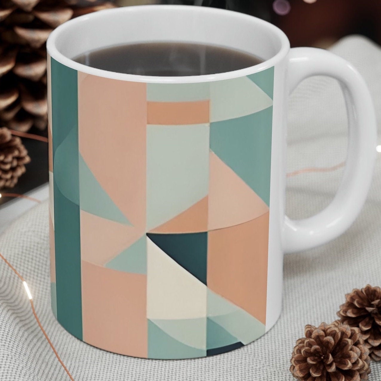 Related pictures for Mug Geometric Shapes Tan Green Pattern Coffee Tea Latte Hot Chocolate Ceramic Mug Oz Etsy