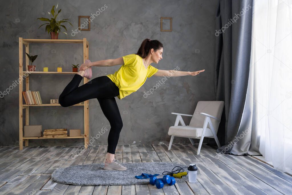 Mujer Latina Practicando Yoga Chica Deportiva De Pie En Pose De Media Luna Ejercicio De Ardha is a popular picture for sexy and hot.
