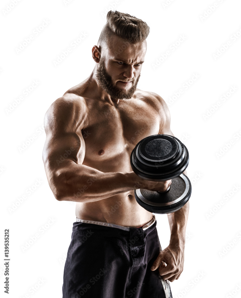 Tag : Muscular Male With Dumbbell Isolated On White Background Photo Of Strong Male With Naked Torso