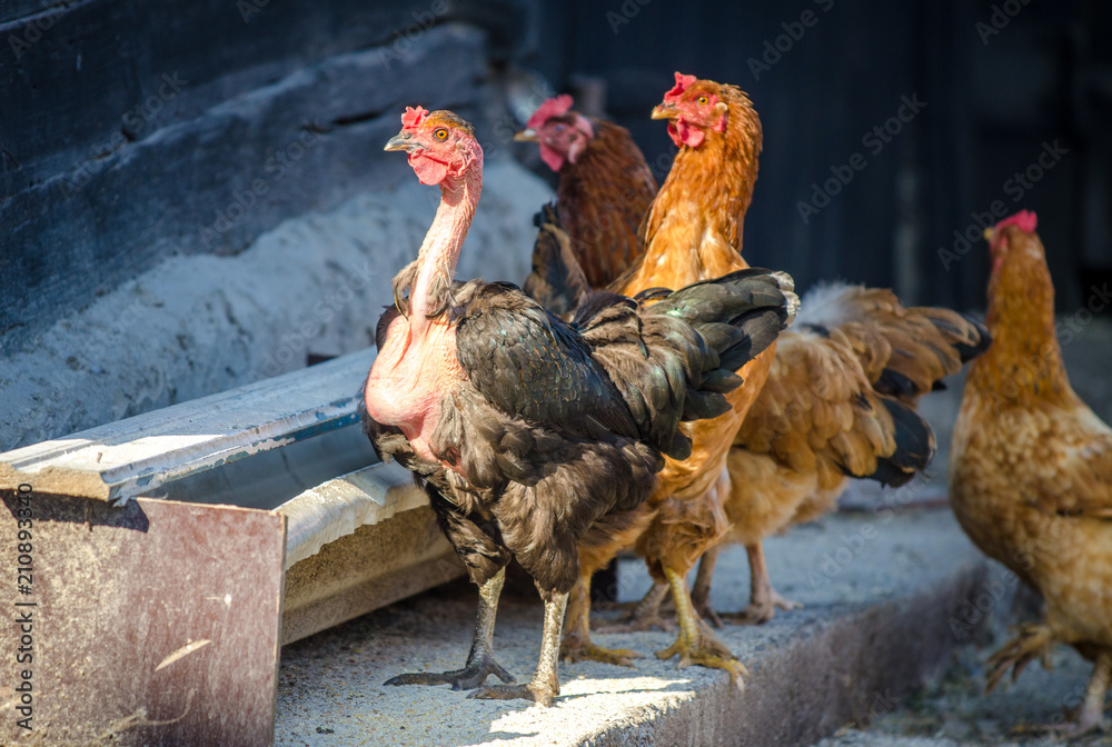 Naked Neck And Traditional Orange Chicken Eating At A Feeder In A Traditional Rural Farm Yard is a popular picture for sexy and hot.