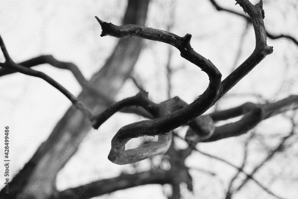 Tag : Naked Twisted Branch Scary Silhouette Spooky Outline Of Bare Twig Close Up Abstract Pattern Of