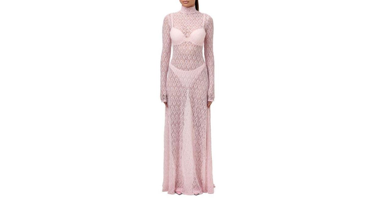 Tag : Naked Wardrobe Floral Long Sleeve Stretch Lace Turtleneck Maxi Dress In Pink Lyst