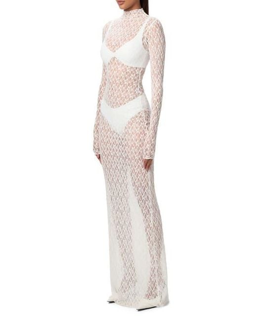 Tag : Naked Wardrobe Mock Neck Long Sleeve Sheer Lace Maxi Dress In White Lyst