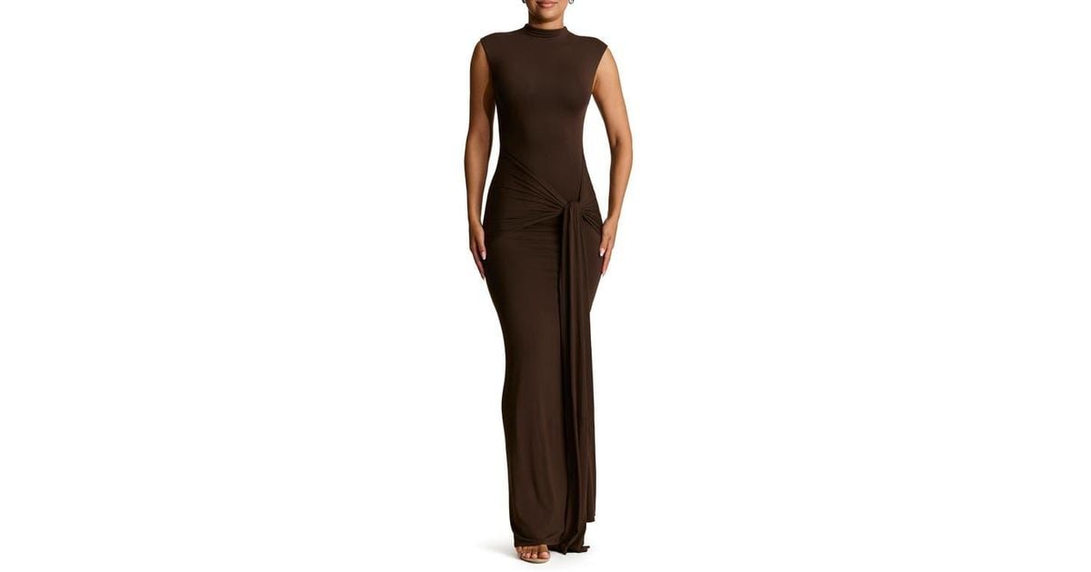 Tag : Naked Wardrobe Smooth Tie Front Maxi Dress In Brown Lyst
