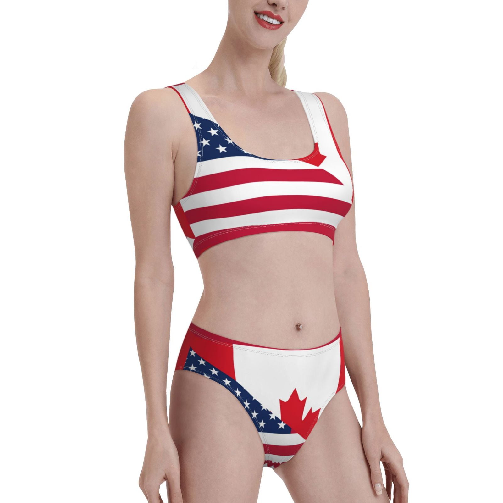 Naloa Usa Canada Flag Print Women High Waisted Two Piece Bikini Sports Crop Top Swimsuit And is a popular picture for sexy and hot.