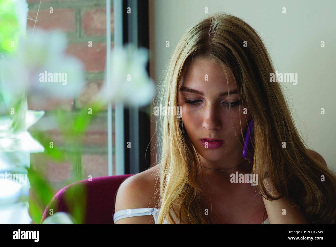 Tag : Natural Blonde Speaks On The Phone Pretty Girl With Long Hair In A Cafe The Girl By The