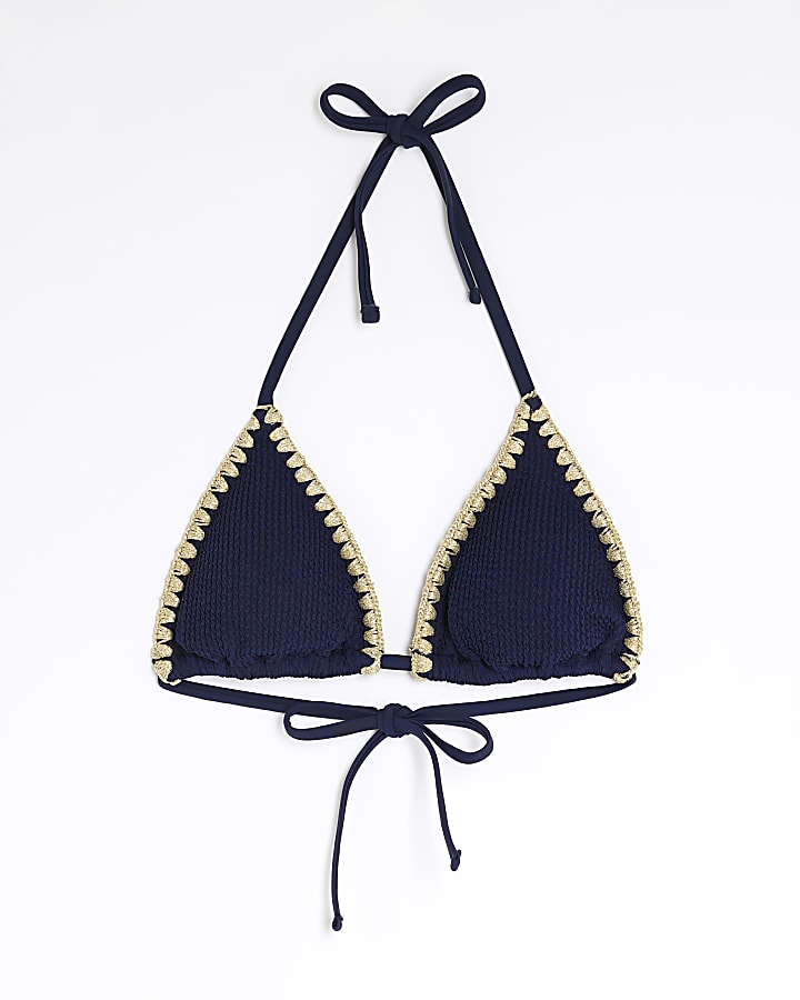 Tag : Navy Textured Triangle Bikini Top River Island