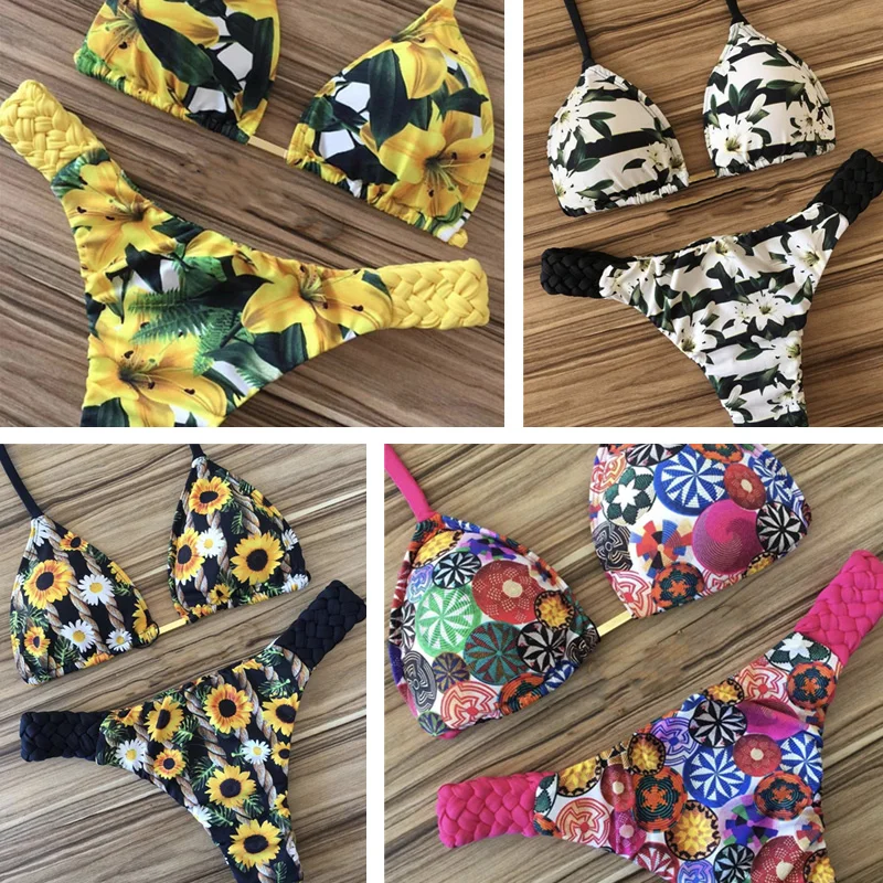 Neue Floral Print Bikini Set Sommer Bademode Badenden Badeanzug Push Up Badeanzug Frauen Bandage is a popular picture for sexy and hot.