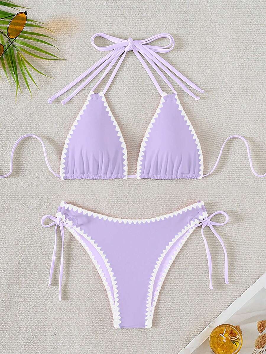 Tag : New Arrival Seashell Trim Women Swimsuit Set Halter Neck Bikini Two Piece Swimwear For