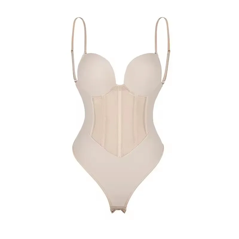 New Black Nude Fashion Deep V Bodysuit Clear Strap Push Up Backless Plunge Thong Seamless