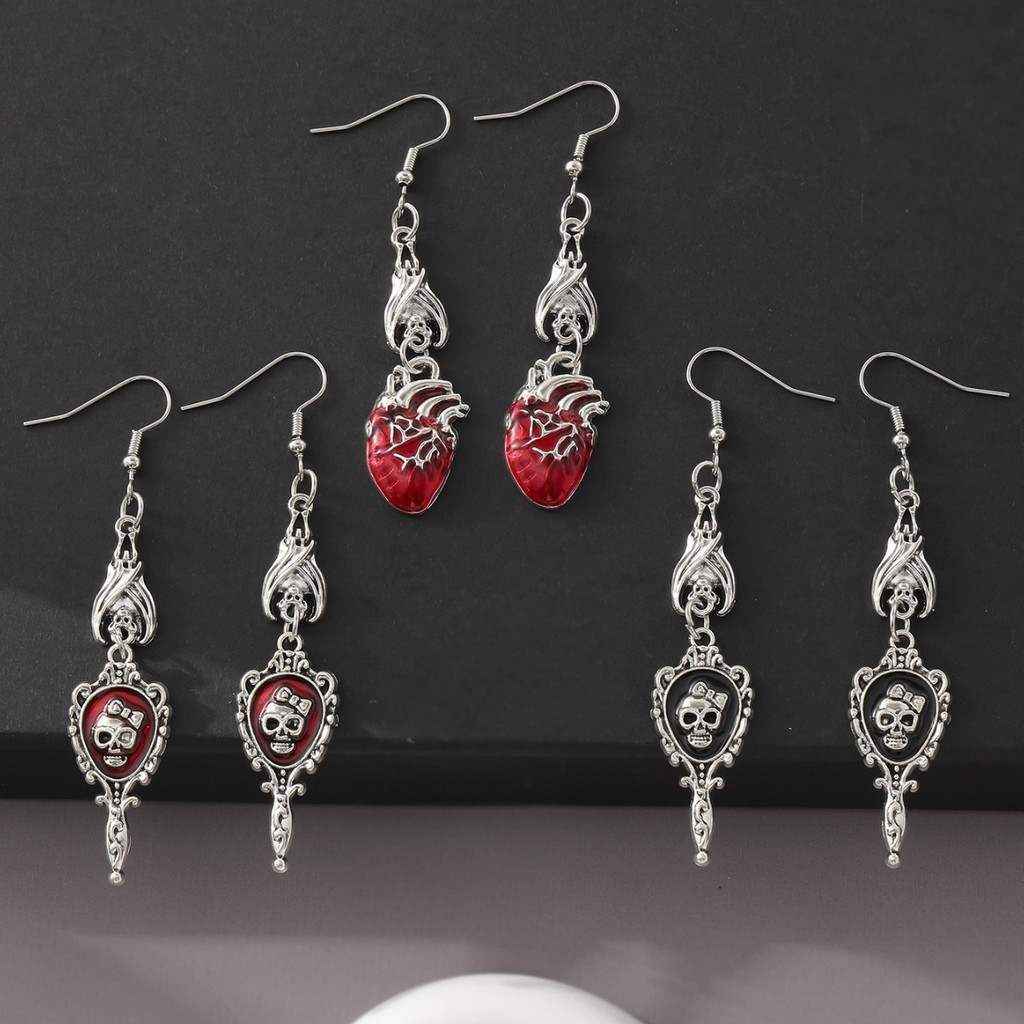 Tag : New Gothic Retro Bat Skull Heart Niche Punk Hot Girl Personality Exaggerated Earrings Shopee