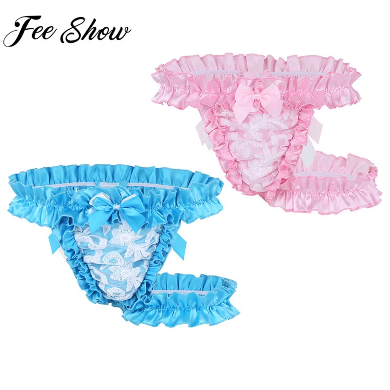 Tag : New Men Lingerie Lace Frilly Satin High Cut Sissy Knickers G String Underwear With Thigh