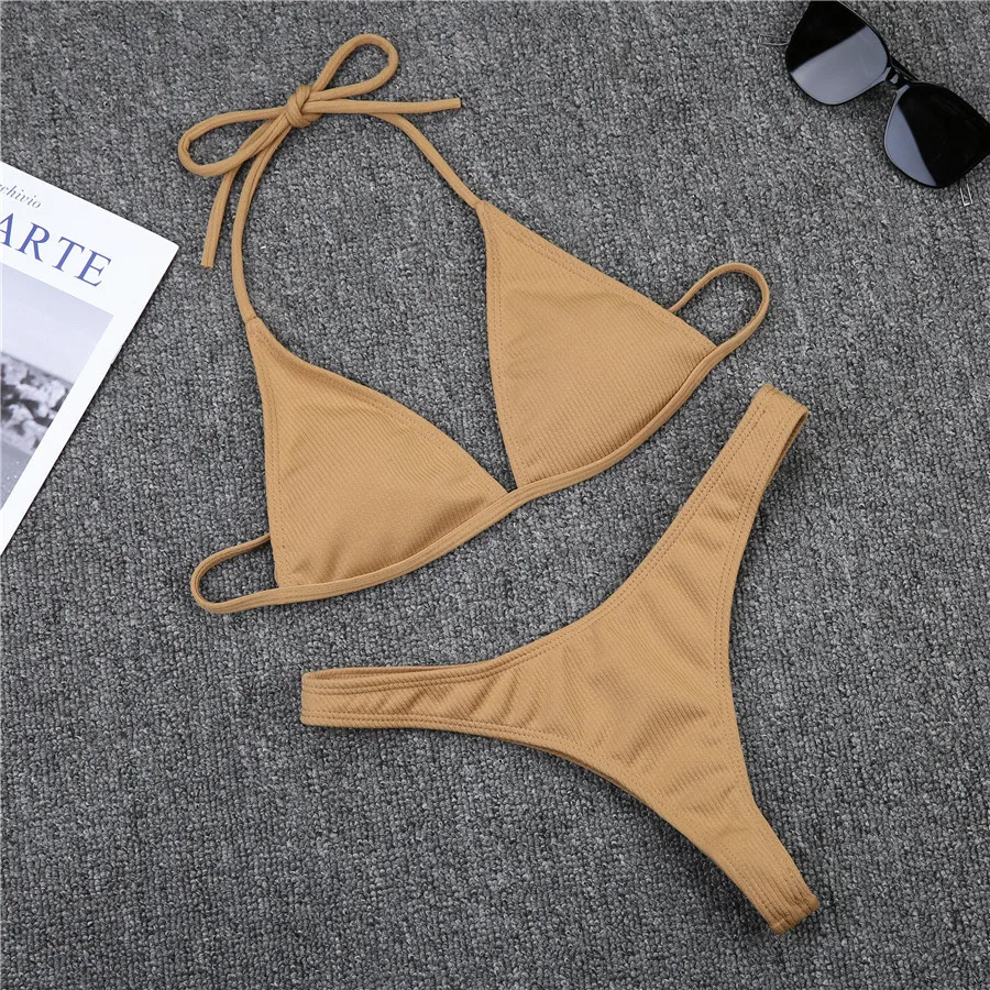 Tag : New Sexy Bikinis Push Up Swimwear Women Swimsuits Solid Brazilian Bikini Set Ribbed Biquini