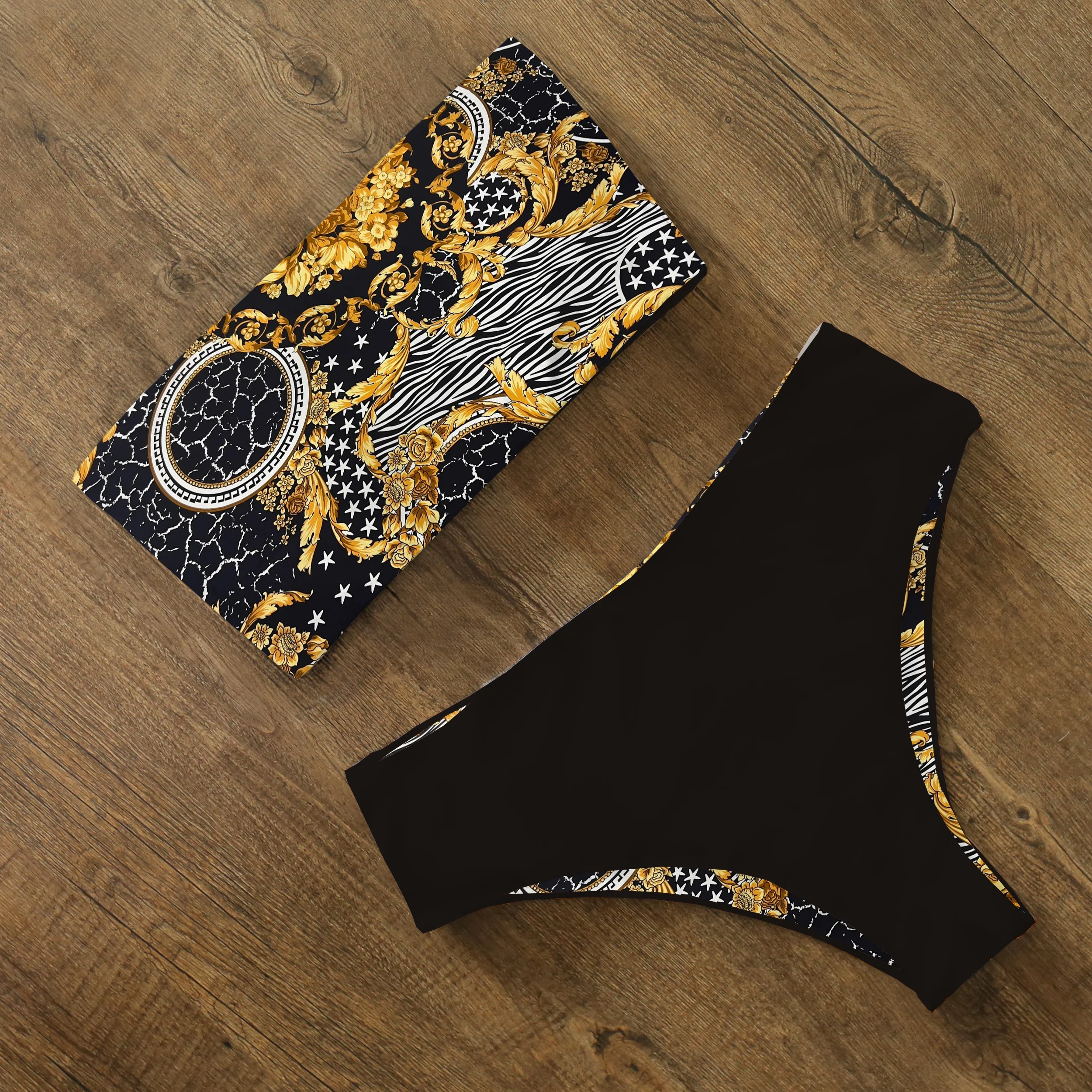 Related pictures for New Sexy Low Hight Bikini Set Swimwear Women Bandeau Female Print Floral Strappy Swimsuit