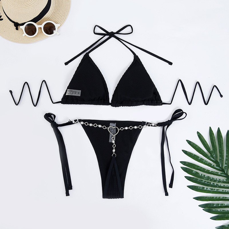 Tag : New Style Swimsuit Solid Color Lace Up Halterneck Hot Spring Bikini Three Point Swimsuit