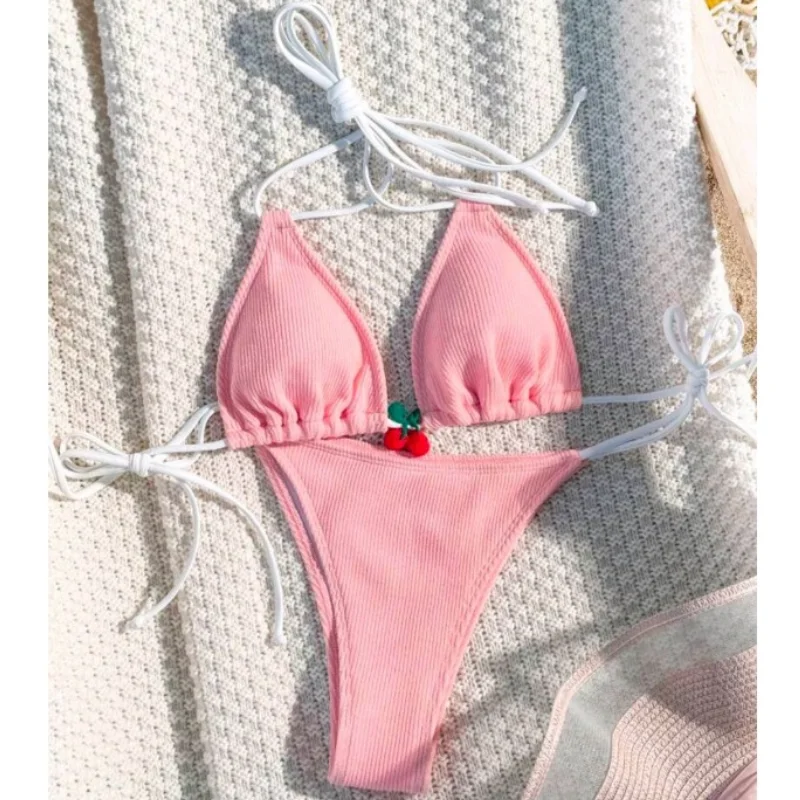 Tag : New Two Piece Bikini Suits Girls Sexy Swimsuit Solid Bikinis Sets Pink Ins Style Women