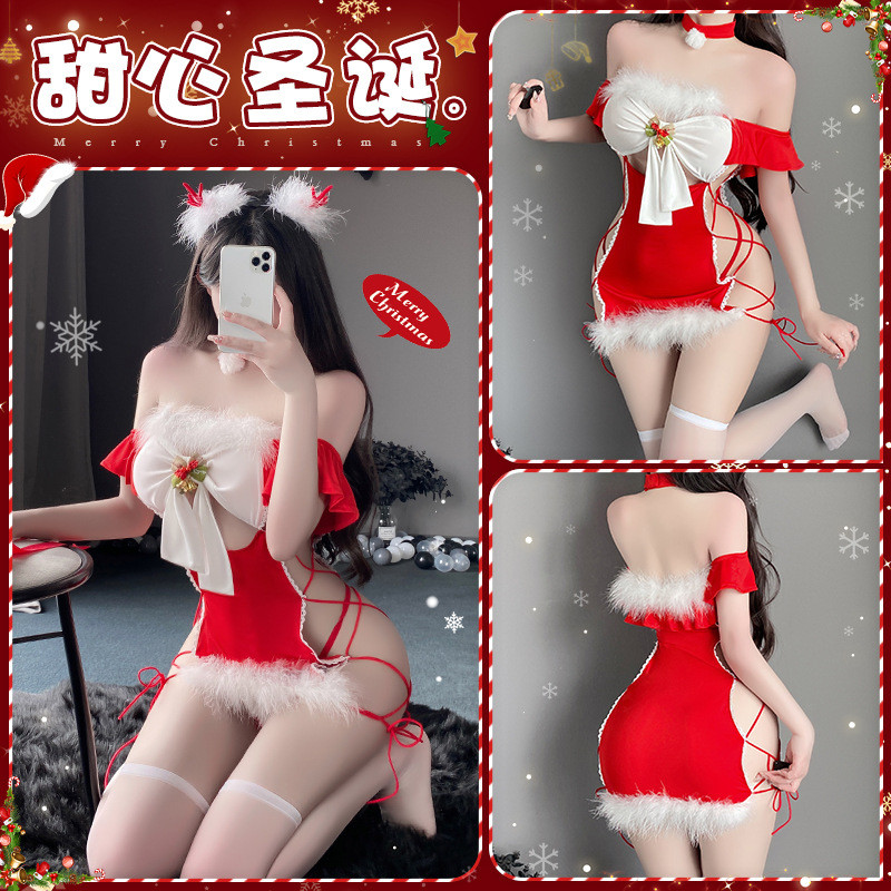 New Year S Sexy Lingerie Sexy Bandeau Strap Hips Nightdress Skinny Red Christmas Uniform Set is a popular picture for sexy and hot.