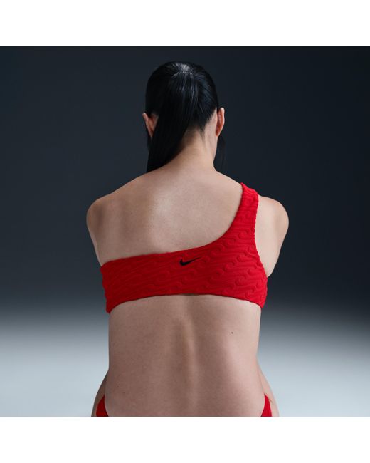 Nike Swim Swoosh Link Terry Asymmetrical Bikini Top In Red Lyst 19782