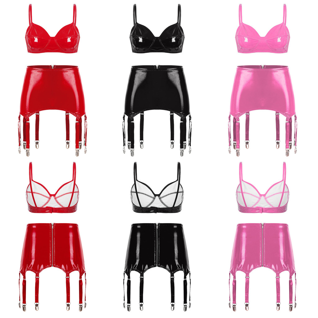 Nikiikoo Womens Wet Look Patent Leather Lingerie Set Wire Free No Pad Bra Top With Miniskirt pictures has 500 x 400 · 50 kB · jpeg.