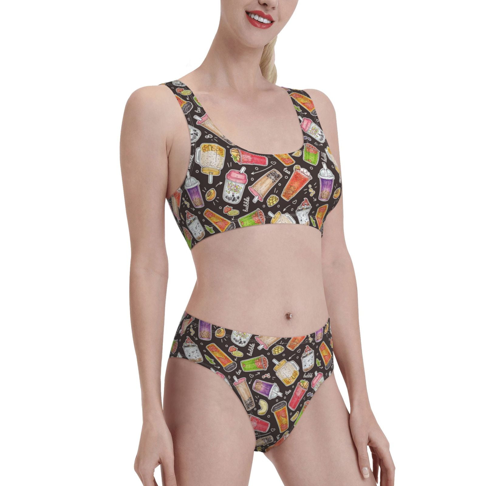 Noikeo Milk Tea Pattern Bikini Set For Women Two Piece Swimsuits Low Rise Bathing Suits is a popular picture for sexy and hot.