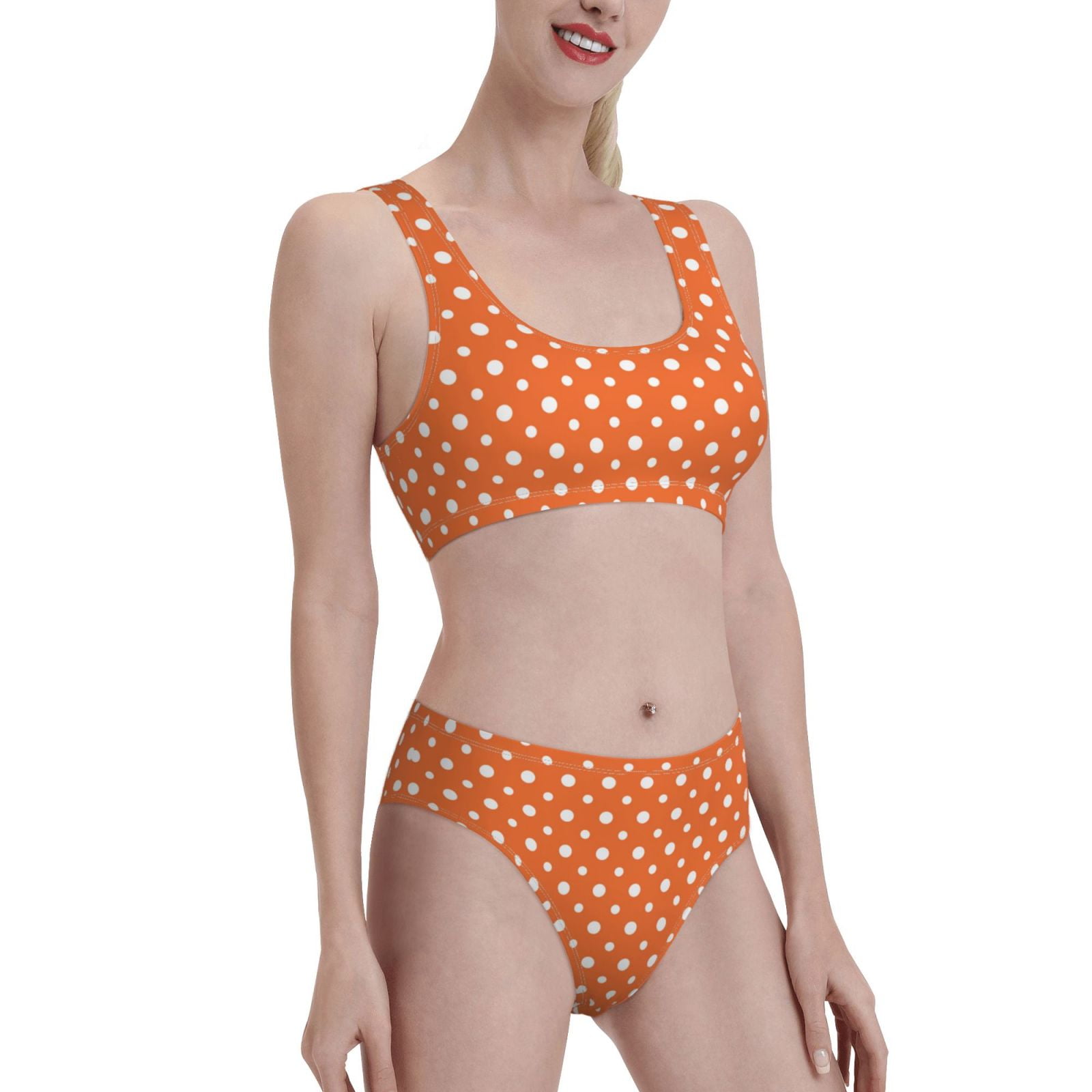 Noikeo Orange And White Polka Dot Pattern Bikini Set For Women Two Piece Swimsuits Low Rise is a popular picture for sexy and hot.
