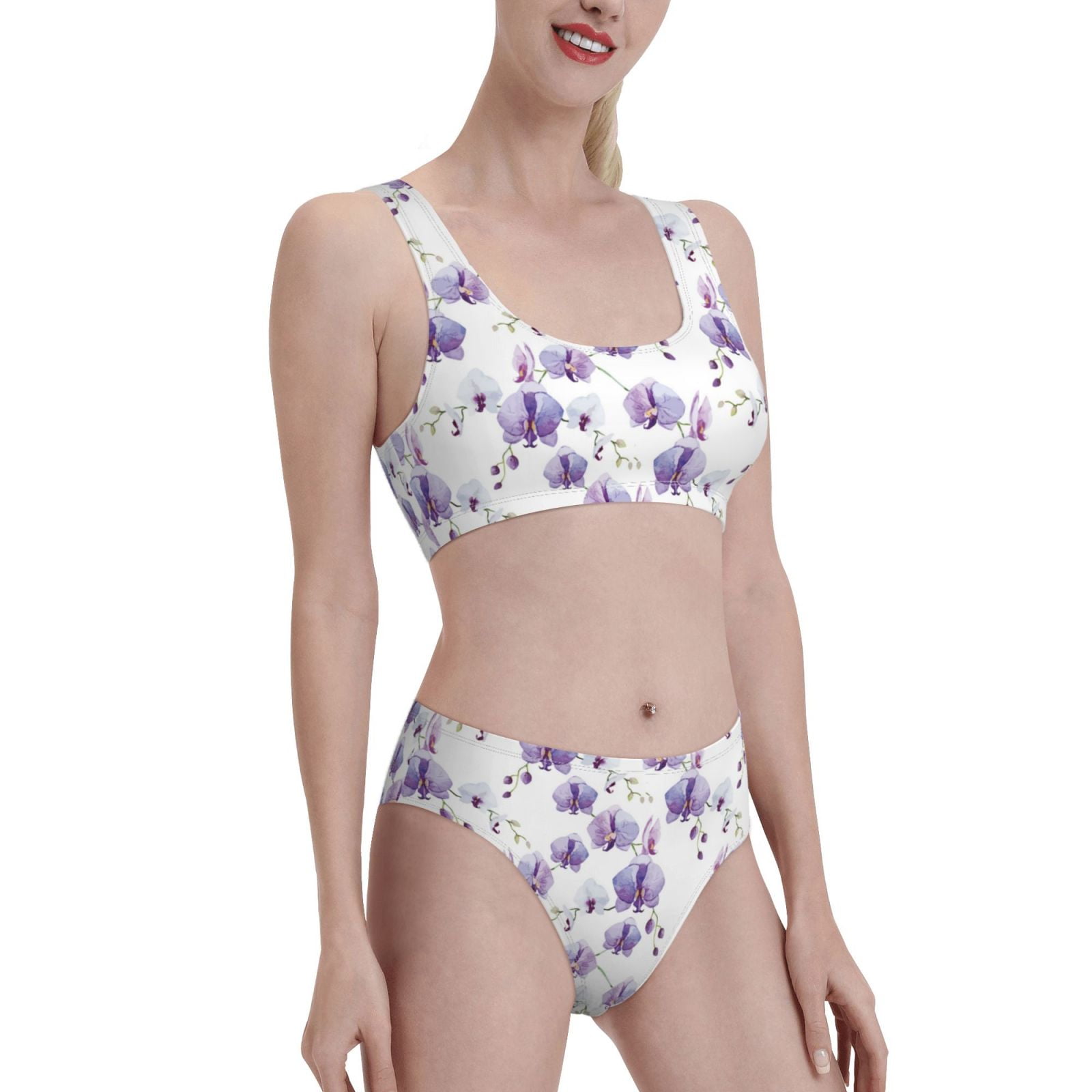 Noikeo Orchids Flowers Pattern Bikini Set For Women Two Piece Swimsuits Low Rise Bathing Suits is a popular picture for sexy and hot.