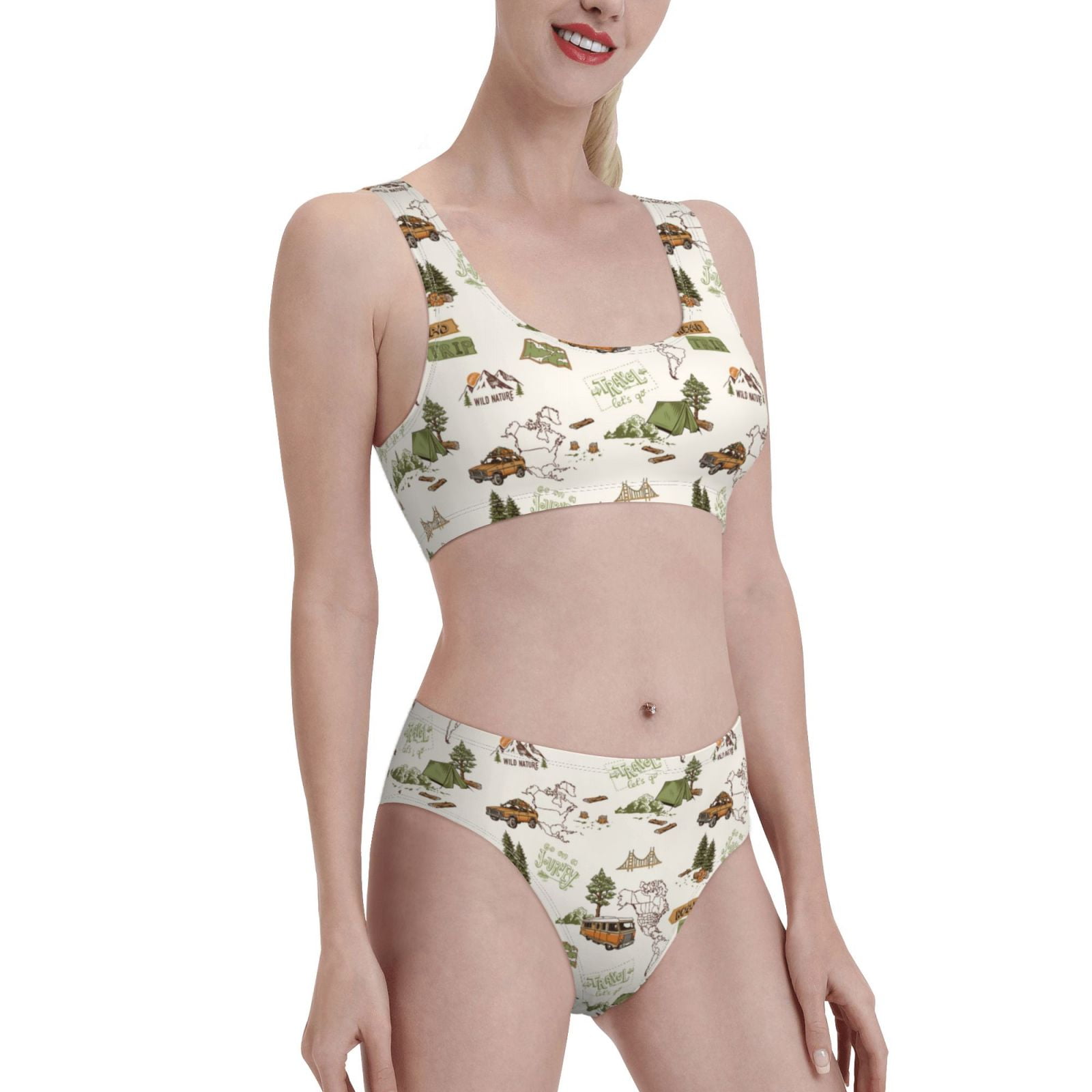 Noikeo Road Trip Pattern Bikini Set For Women Two Piece Swimsuits Low Rise Bathing Suits is a popular picture for sexy and hot.