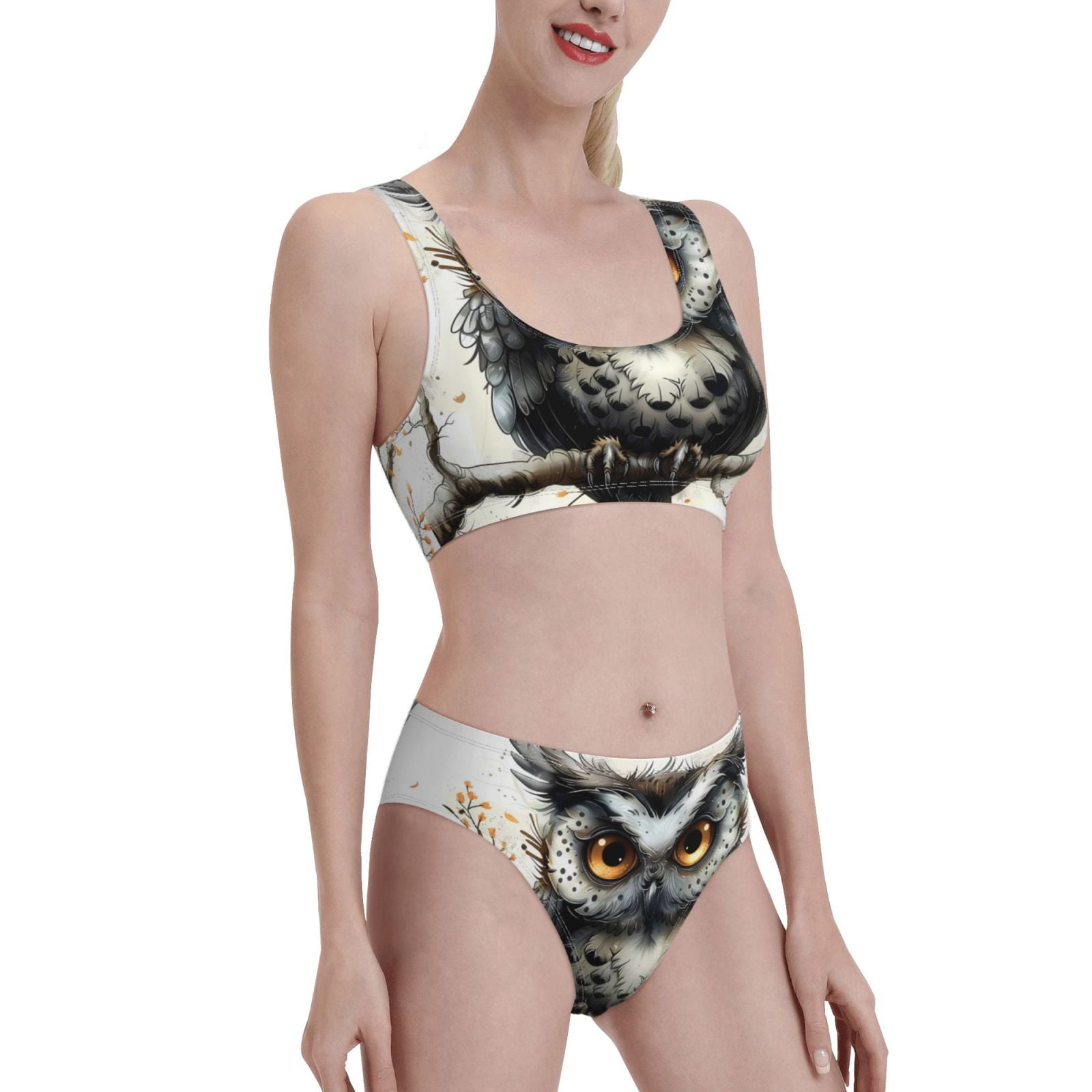 Noikeo Whimsical Owl On Branch Pattern Bikini Set For Women Two Piece Swimsuits Low Rise Bathing is a popular picture for sexy and hot.