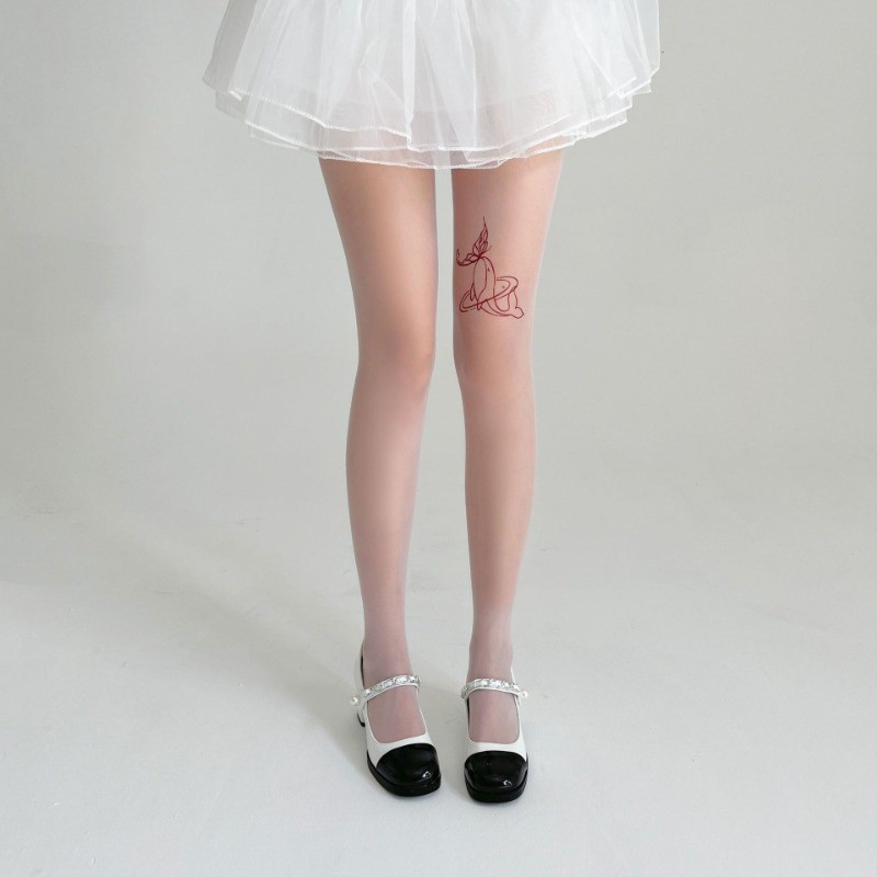 Nova Baleia Impressa Borboleta Tom De Pele Meias Nude Tatuagem Arco is a popular picture for sexy and hot.