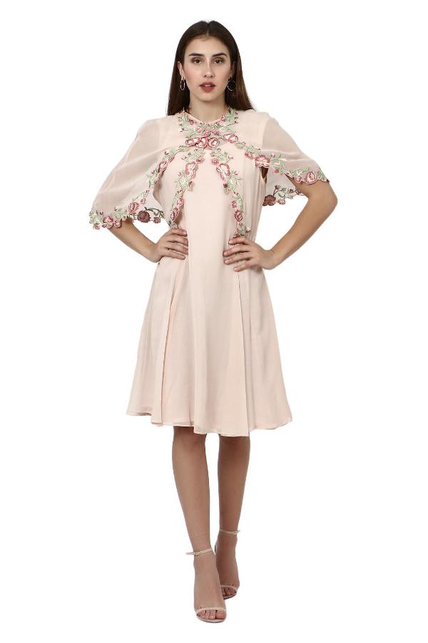 Tag : Nude Floral Cape Dress By Ren By Rishi Neha For Rent Online Flyrobe