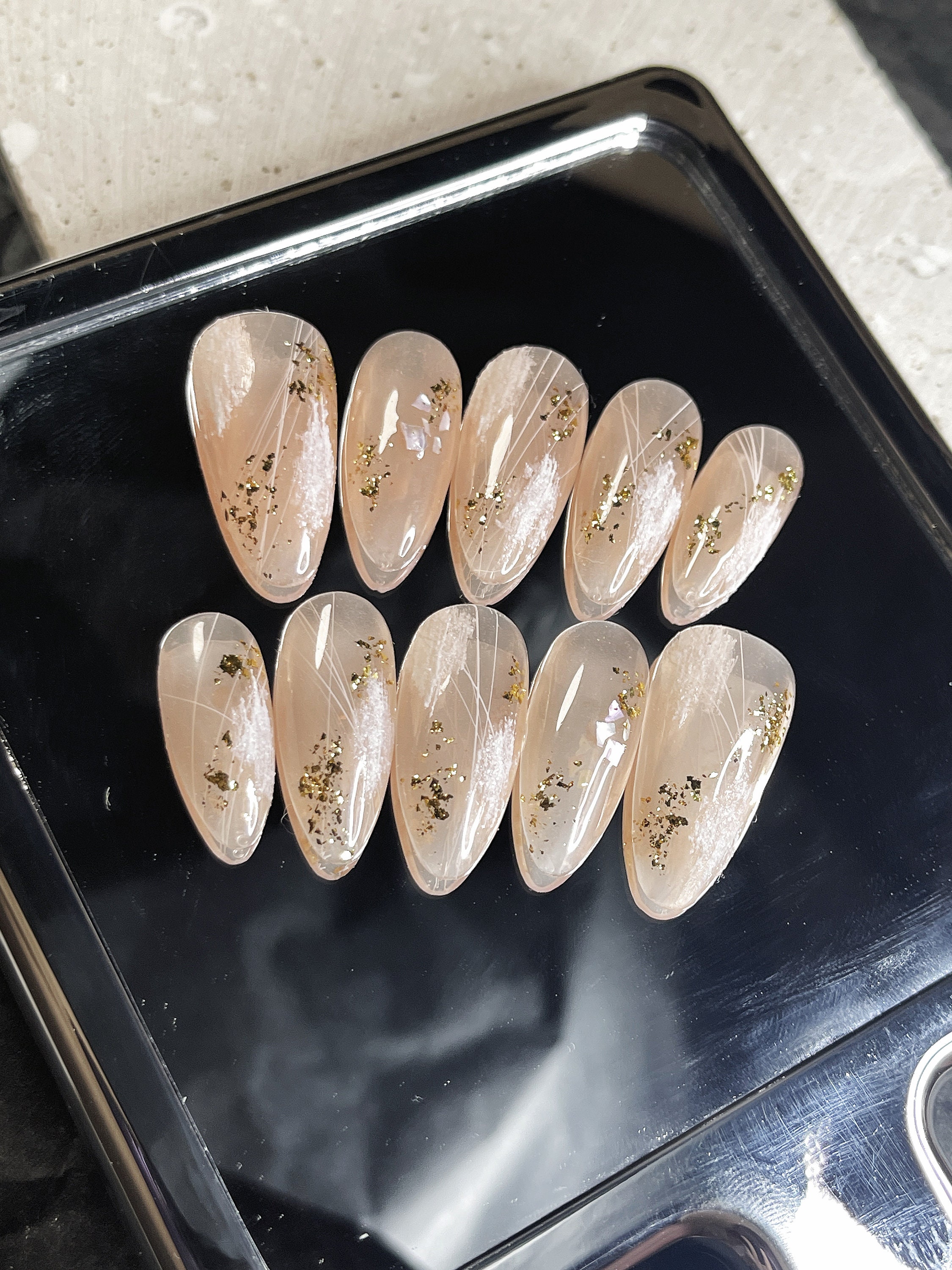 Tag : Nude Glittery Sculptured Press On Nails Gold Flakes Handmade Art Nails Jelly Nails Etsy