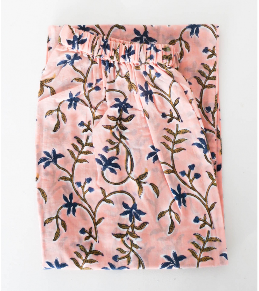 Related pictures for Nude Pink Hand Printed Cotton Pyjama With Floral Pattern Free Size