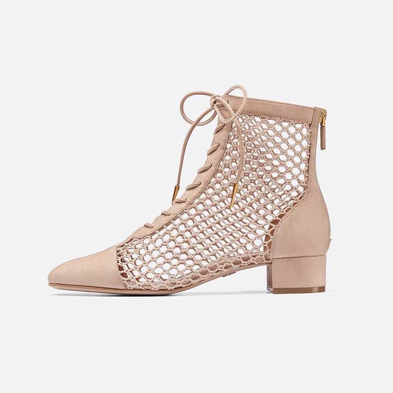 Tag : Nude Vegan Suede Mesh Ankle Boots Chunky Heel Lace Up Booties Fsjshoes
