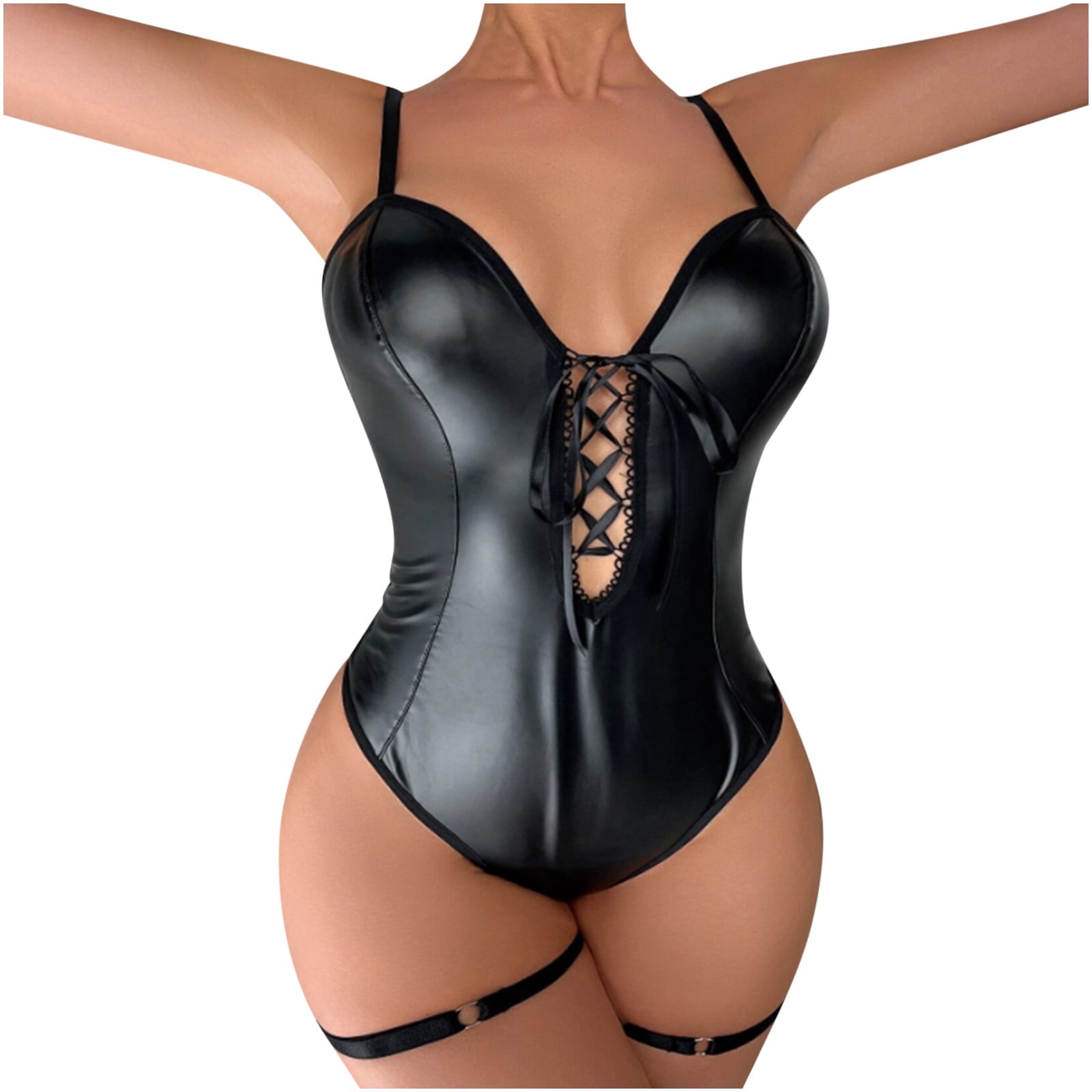Odeerbi Women S Leather Lingerie Bodysuit Set Teddy Leather Lingeries Valentine S Day Sexy is a popular picture for sexy and hot.
