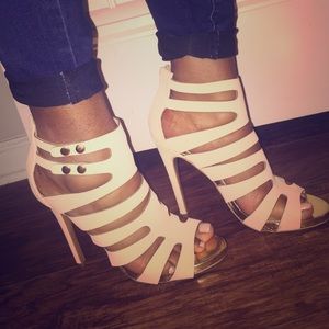 Off Shoes Nude Faux Leather Strappy Lace Up Heels From Kush S Closet On Poshmark 134000