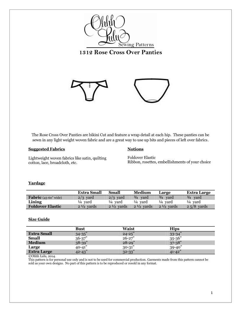 Tag : Ohh Lulu Vintage Style Lingerie Sewing Pattern Rose Cross Over