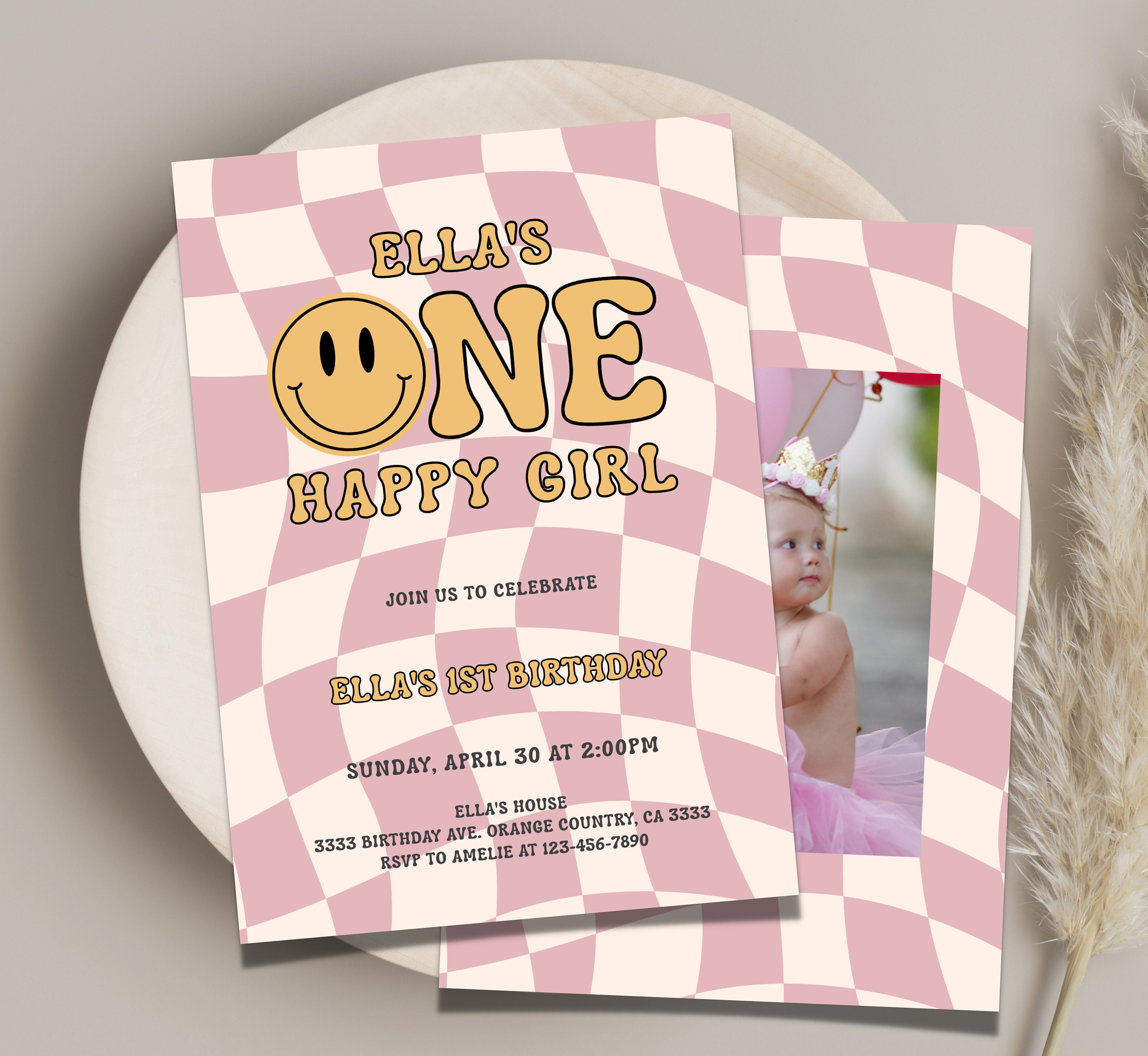 Tag : One Happy Babe Birthday Invitation One Happy Gal St Birthday Invite Editable One Happy Girl