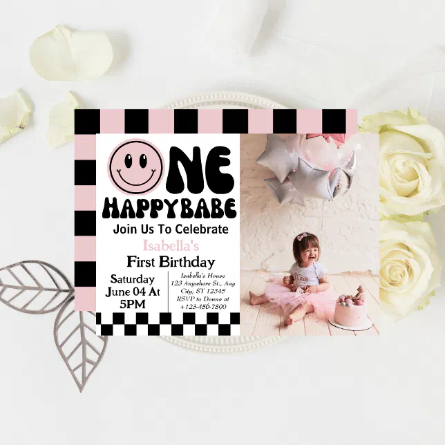 Tag : One Happy Babe Girl St Birthday Photo Invitation Zazzle