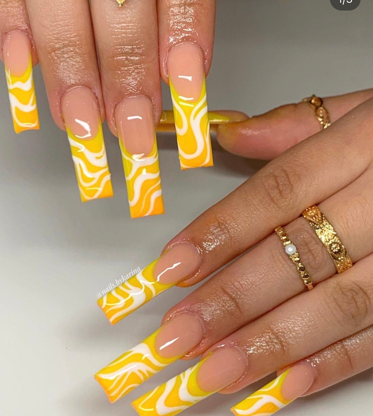 Tag : Orange And Yellow Ombr French Tip Abstract Line Press On Nails Nude Nails Swirl Nails Spring