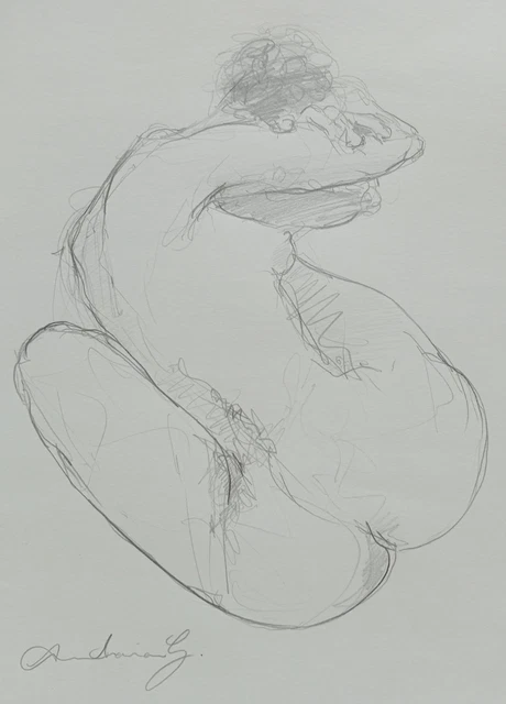 Tag : Original Expressive Pencil Drawing Of The Back View Of A Female Nude Seated Pose