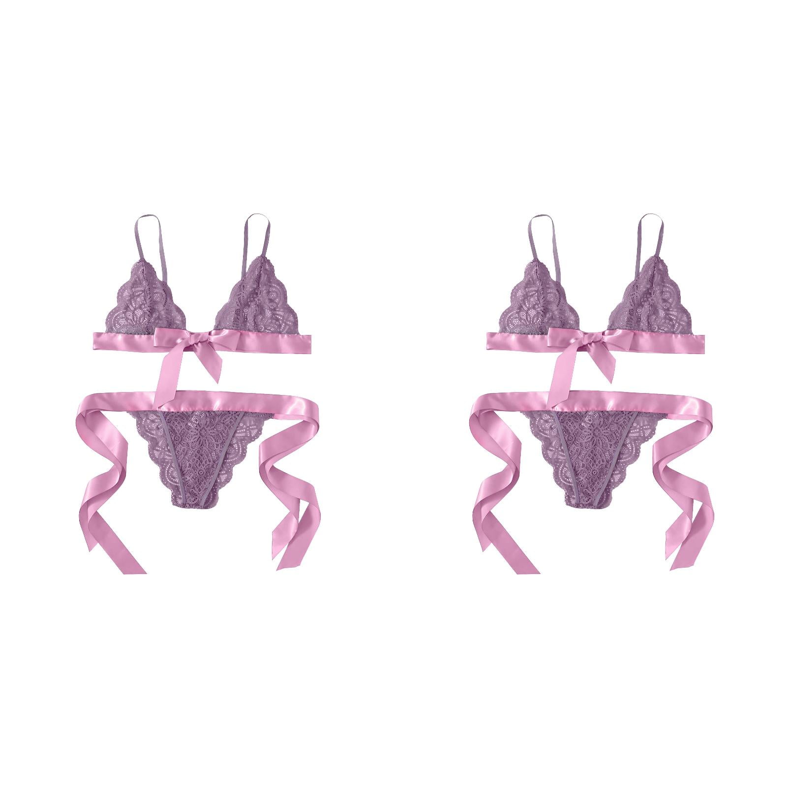 Pack Women Bra Underpant Scalloped Trim Tie Side Lace Set Lingerie Bow Bustier Corset With is a popular picture for sexy and hot.