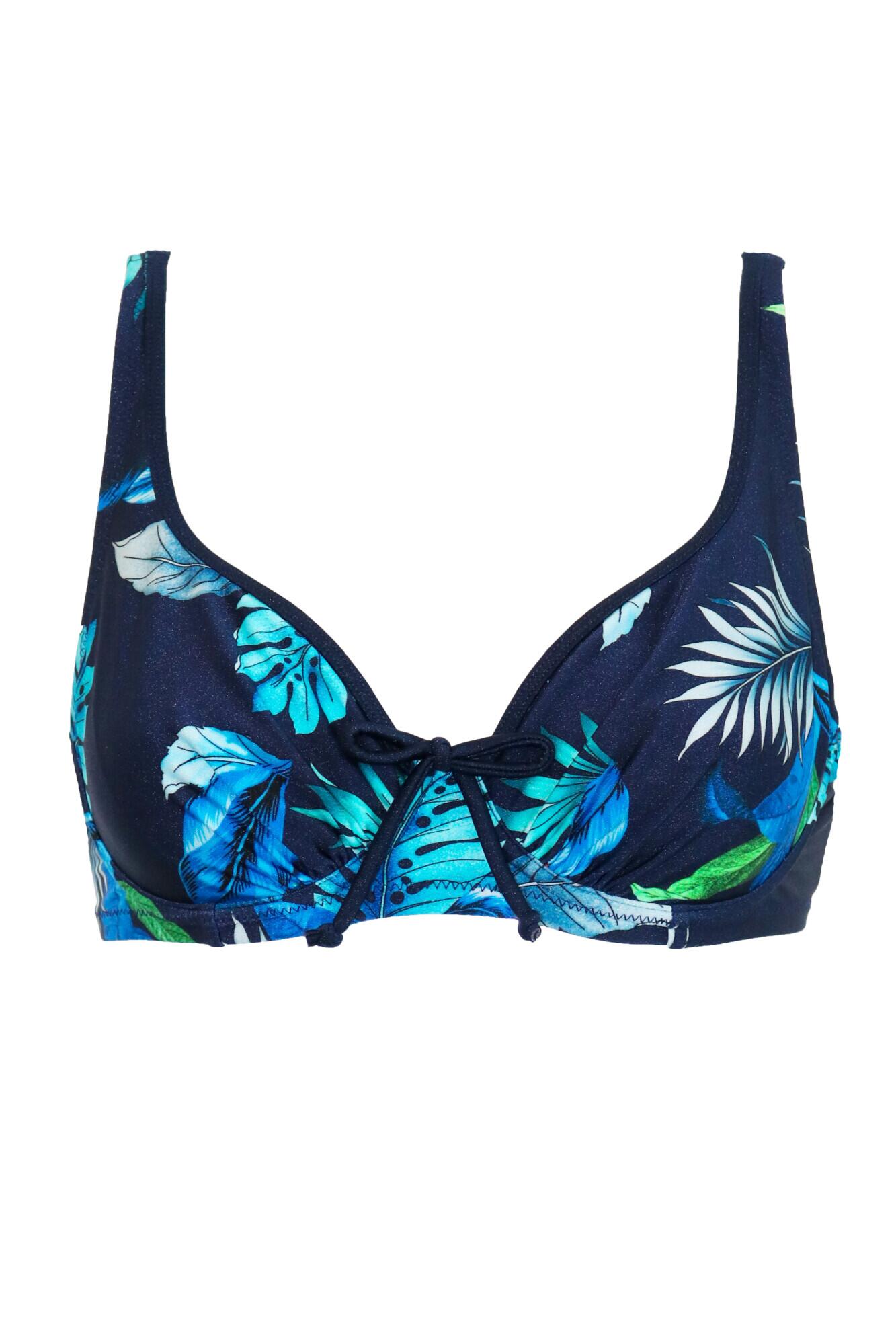 Tag : Palermo Underwired Non Padded Bikini Top In Navy Tropical Pour Moi