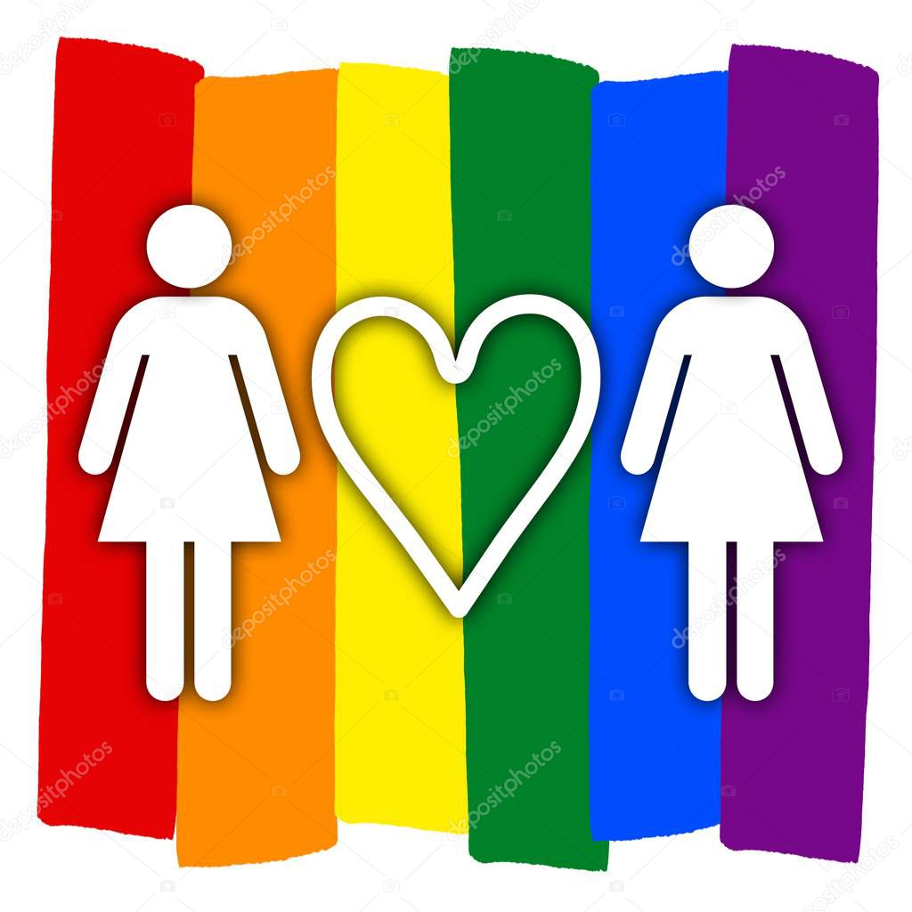 pareja gay con multicolor arco iris círculo amor LGBT pareja símbolo dos mujer con corazón 2023 is a popular picture for sexy and hot.