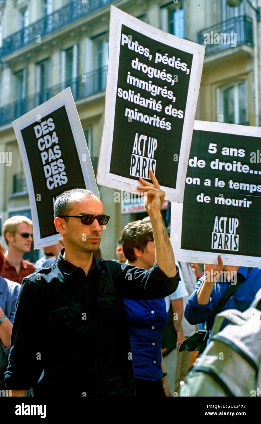 Tag : Paris France Gay Pride March Parade Aids Activists From Act Up Paris Marching Holding